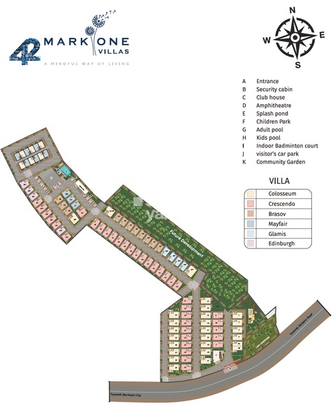 If you ' re looking for a luxurious abode that offers a perfect balance of style and functionality, look no further! 42 Mark One offers a range of carefully curated villas, including 3 BHK and 4 BHK options, with sleek designs and ample space. Whether you ' re a young professional or a growing family, our villas provide the perfect blend of functionality and aesthetics.Nearby Landmarks