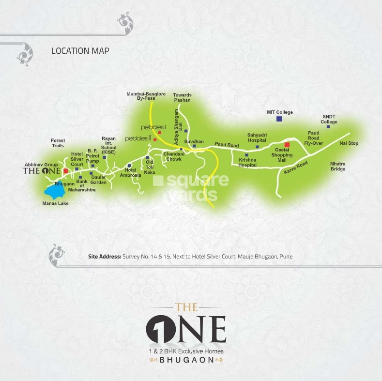 Abhinav The One is an an elegant Project by Abhinav Group who are one of the renowned developers in Pune. It is located in Bhugaon, Pune West and well connected by major road(s) like Paud Road, Satara Road. Abhinav The One is spread across 2.84 acre. The Project has 168 Units. The status of the Project is Ready to Move. The flat units on sale are available in various configurations like 1 BHK Flats at a minimum price of Rs 45.02 L and maximum price of Rs 50.82 L with Property Size ranging from 380 Sqft to 429 Sqft, 2 BHK Flats at a minimum price of Rs 62.20 L and maximum price of Rs 69.42 L with Property Size ranging from 525 Sqft to 586 Sqft.
