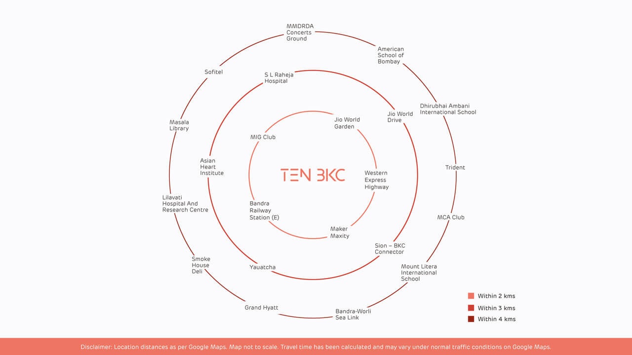 Radius Ten BKC is a part of one of the most premium Residential Projects in BKC,Luxurious Home with hand-picked amenities that suit your stature,Close to Bandra Railway Station and Bandra-Worli Sea Link,Well Connected to Western Express Highway and International Airport, and a short walk to the well-known shopping destinations of Bandra and Worli. The project offers 722 units spread over 14.42 acres of prime location. The project consists of 2, 3 and 4BHK apartments that come with smart home automation and premium specifications with sizes ranging from 741 sqft to 2032 sqft. The project offers a variety of amenities such as a children’s play area, a club house, a gymnasium, a swimming pool, a spa and a garden.