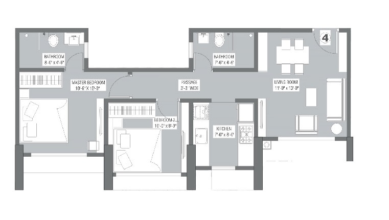 | 2 BHK Apartment | 707 Sq. Ft. | 2.06 Cr |