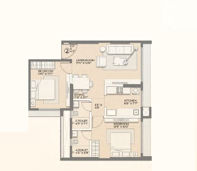 | 2 BHK Apartment | 582 Sq. Ft. |