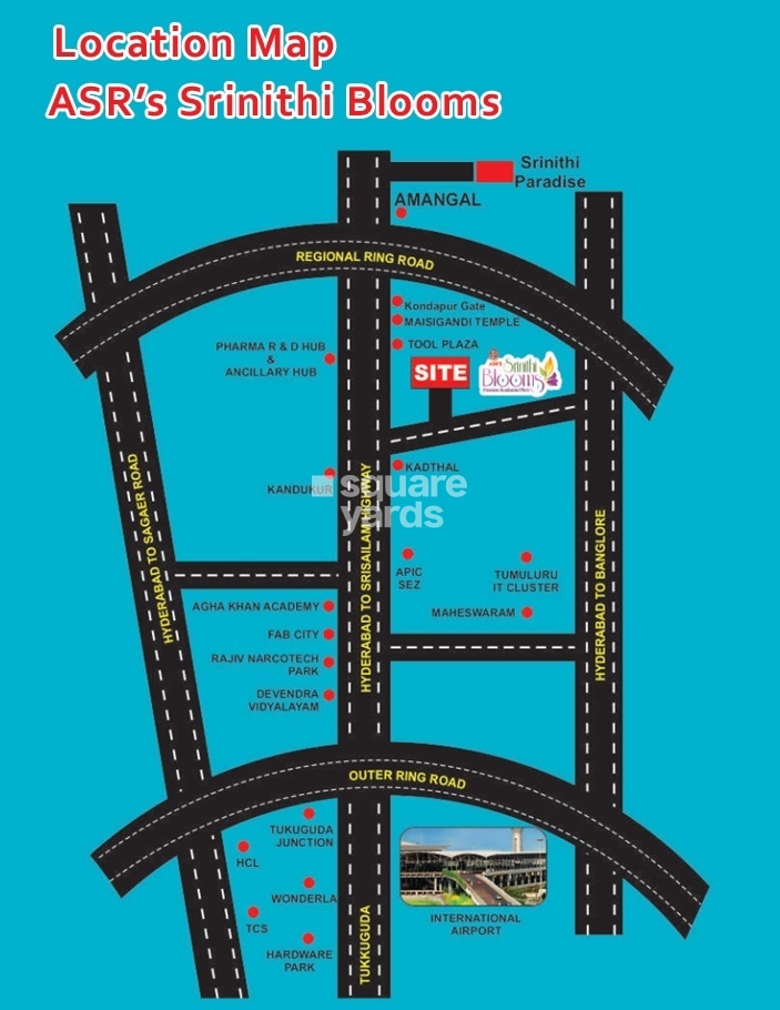 Introducing ASR Srinithi Blooms, a premier residential and retail project located in Kadthal, HYDERABAD. Strategically positioned near NH 765, this project is easily accessible and offers a hassle-free commute to the city. With a RERA approved project code P02400006295, investors can be assured of a secure and transparent investment opportunity.