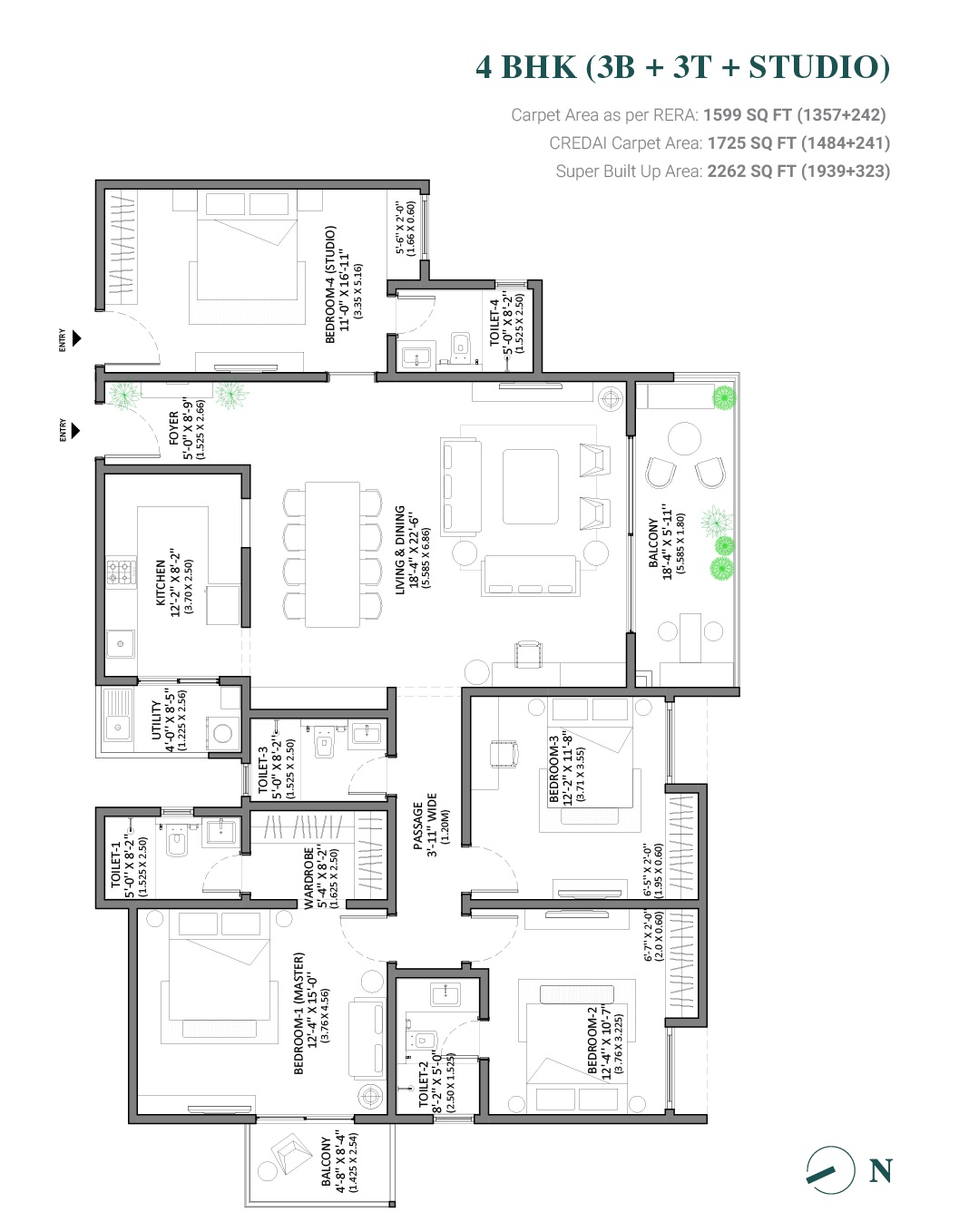 | 4 BHK Apartment | 2262 | 1.87 Cr |