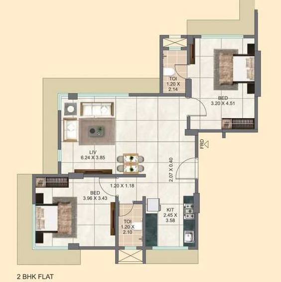 | 2 BHK Apartment | 647 Sq. Ft. | 3.60 Cr |