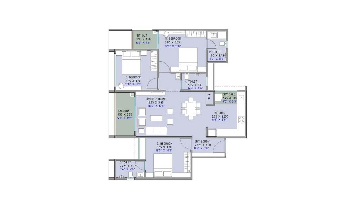 | 3 BHK Apartment | 982 | 1.15 Cr |