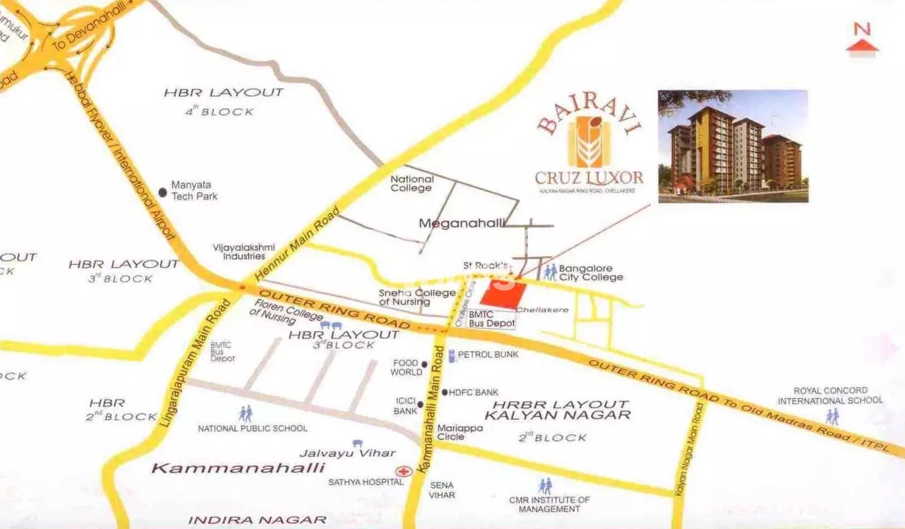 Bairavi Cruz Luxor is an a beautiful Project by Bairavi Properties and Construction Pvt Ltd who are one of the renowned developers in Bangalore. It is located in Kalyan Nagar, Central Bangalore and well connected by major road(s) like Outer Ring Road. Bairavi Cruz Luxor is spread across 2.5 acre. The Project has 45 Units. The status of the Project is Well Occupied. The flat units on sale are available in various configurations like 3 BHK Flats at a minimum price of Rs 1.36 Cr and maximum price of Rs 1.86 Cr with Property Size ranging from 1887 Sqft to 2590 Sqft, 4 BHK Flats at a minimum price of Rs 2.09 Cr and maximum price of Rs 2.85 Cr with Property Size ranging from 2906 Sqft to 3965 Sqft.