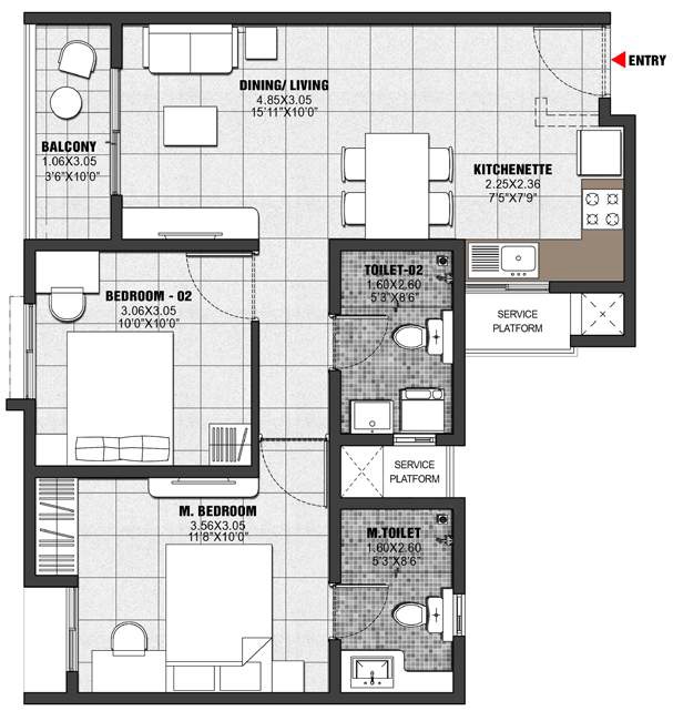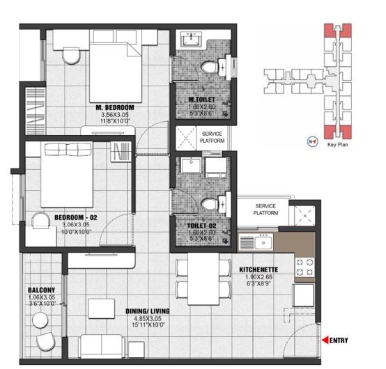 | 2 BHK | 1035 | 45.52 Lac |