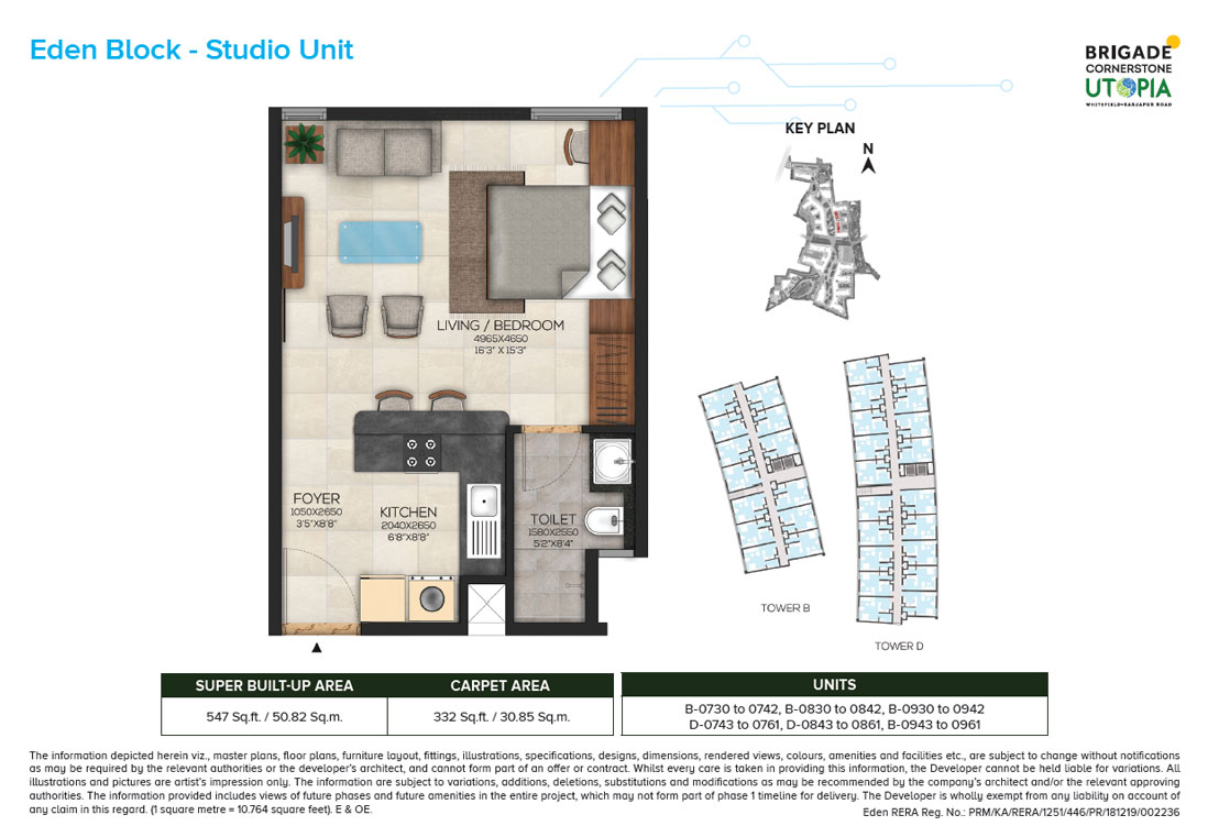 Explore the available unit options at Brigade Cornerstone Utopia Eden, starting from 547 Sq. Ft. with a price of 30.58 Lac. The project offers 1 and 2 BHK apartments with a range of options to suit your needs and budget. From 782 Sq. Ft. to 799 Sq. Ft., the 1 BHK apartments offer a perfect blend of space and comfort. For larger families, the 2 BHK apartments with an area of 1097 Sq. Ft. are an ideal choice. Contact us today to book your dream home at Brigade Cornerstone Utopia Eden.
