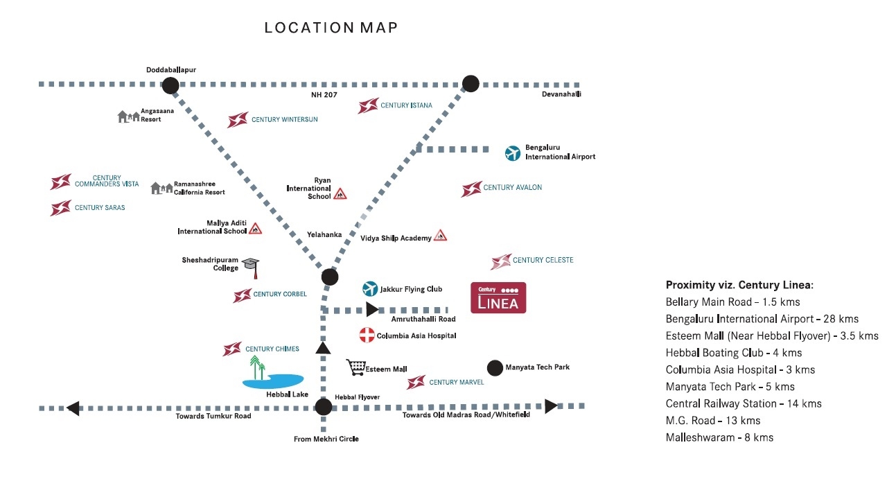 Century Linea is a new project launched by Century Developers in North Bangalore,Bangalore. The project offers luxurious apartments spread over 72 units spread over 1 acre. The apartments come with two sided open spaces and easy access to the areas like Malleshwaram, MG Road, Hebbal Boating Club, as well as beautiful craftsmanship in interiors and exteriors. The project offers luxurious residences with sizes ranging from 1510 sqft to 1941 sqft. The project is located in a prime location and offers easy access to the areas like Malleshwaram, MG Road, Hebbal Boating Club.
