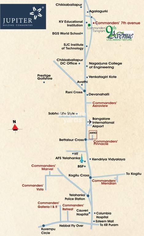 Introducing Commanders Tangram 9th Avenue, a premium real estate project located in the rapidly growing suburb of Chikkaballapur. This project offers a unique opportunity to own a plot of land in a strategic location, with proximity to the major connecting road of Bellary Road, just 1.4 km away. The project is designed with the needs of modern homeowners in mind, providing a serene and secure environment for families and individuals alike.