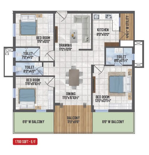 | 3 BHK Apartment | 1700 | 1.10 Cr |