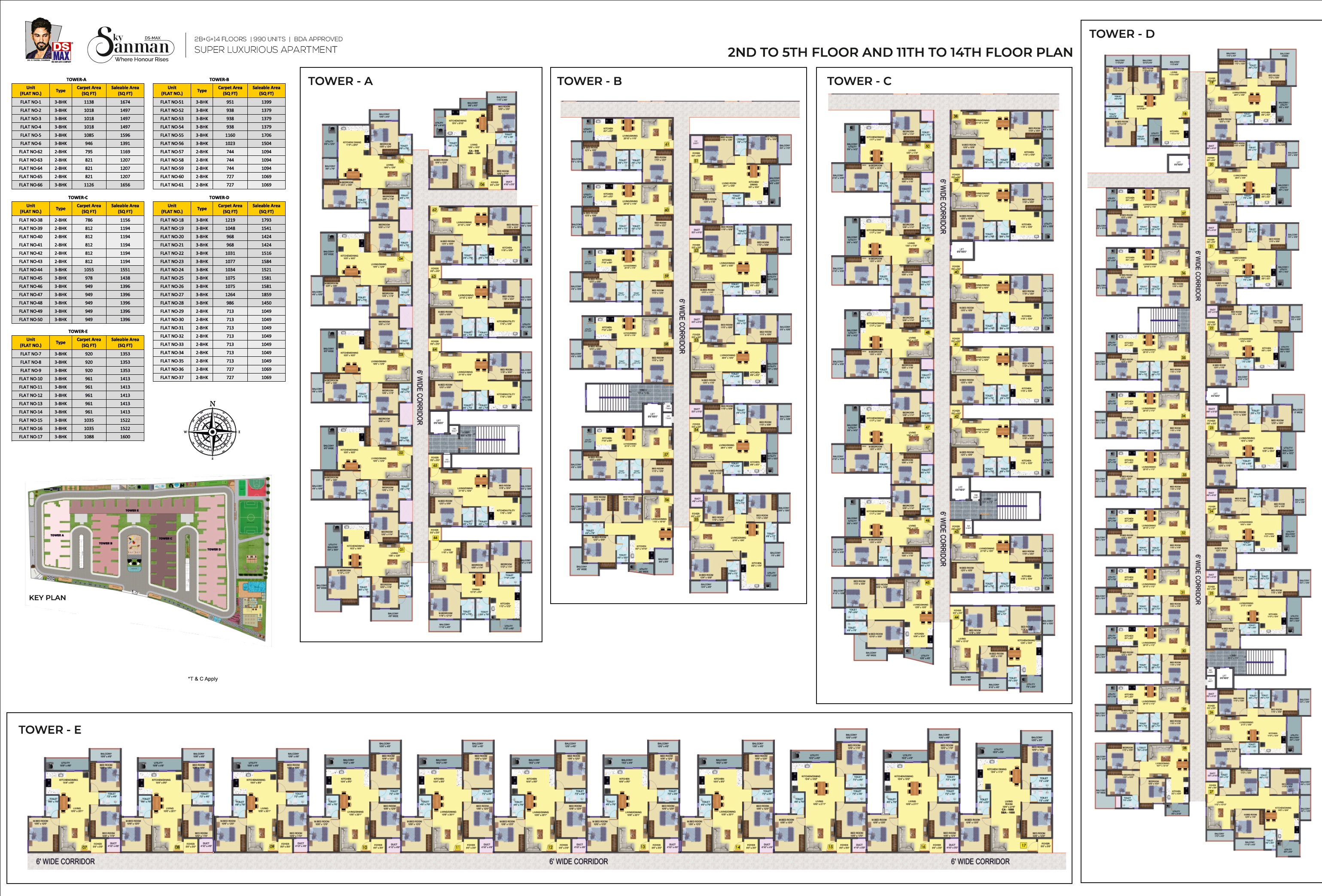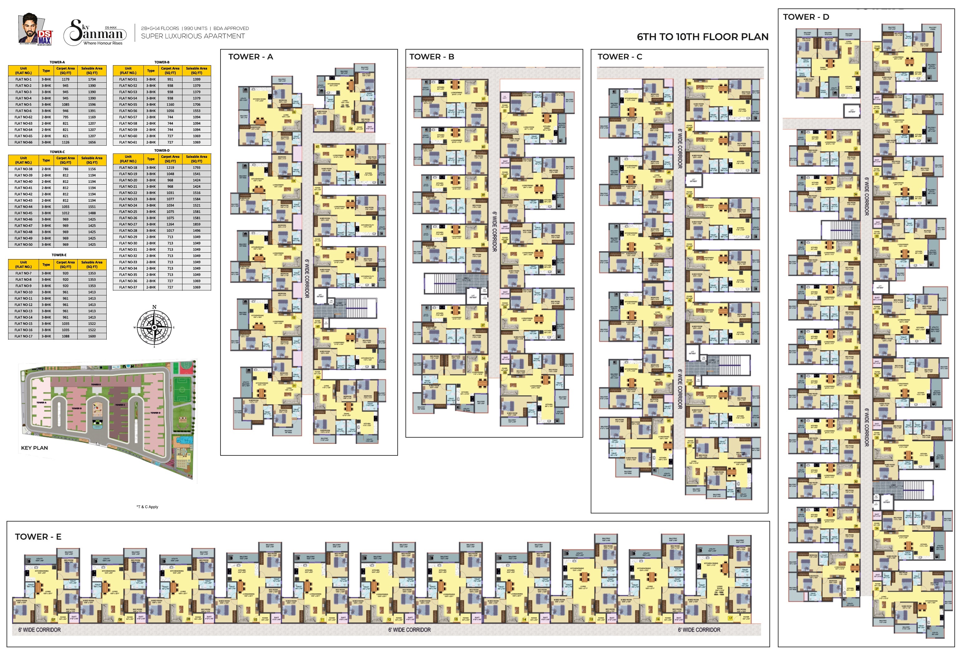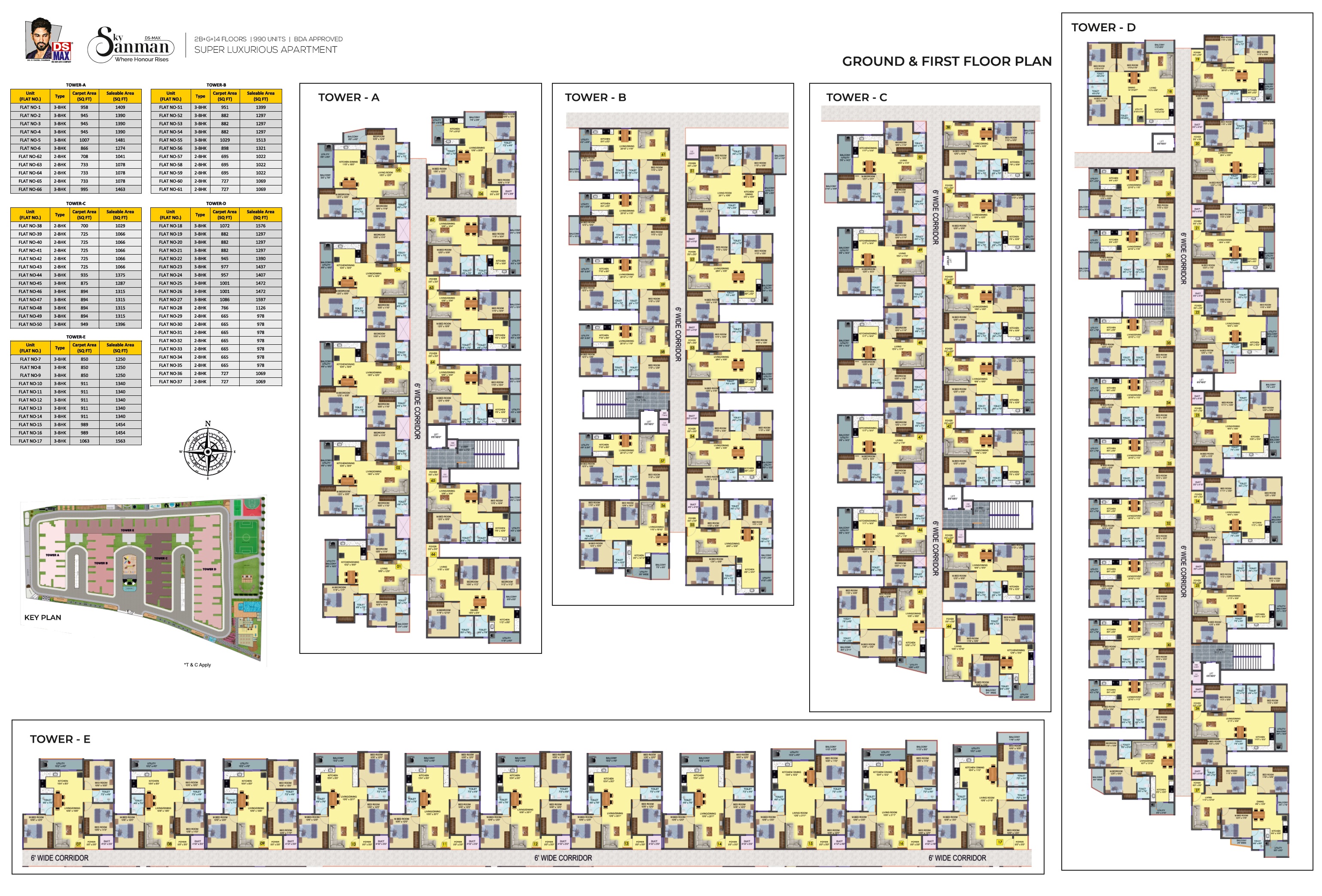 DS Max Sky Sanman is a budget friendly Project located in Bannerghatta Road, South Bangalore and well connected by major road(s) like Anekal Road, Bannerghatta Road, NICE Peripheral Ring Road. The total area in which DS Max Sky Sanman has been built is 5.8 acre. This project has been developed by DS MAX Properties Pvt Ltd who are one of the reputed developers in the Bangalore. The Project current status is New Launch. It has 990 Units. The Apartment units are available in various configurations like 2 BHK Flats at a minimum price of Rs 41.08 L and maximum price of Rs 44.90 L with Property Size ranging from 978 Sqft to 1069 Sqft, 3 BHK Flats at a minimum price of Rs 52.50 L and maximum price of Rs 78.08 L with Property Size ranging from 1250 Sqft to 1859 Sqft.