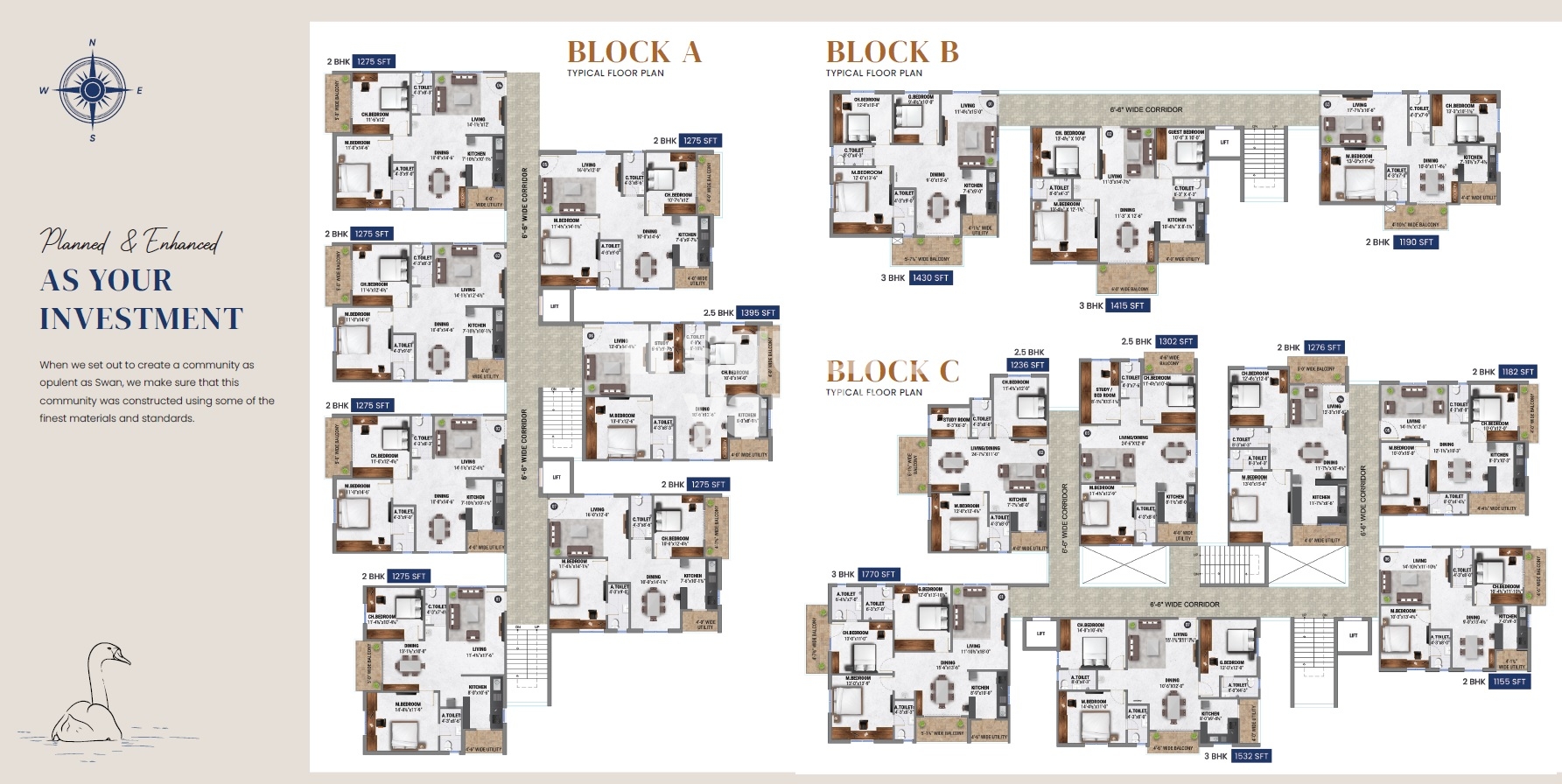 Fortune Green Homes Swan is a spacious family dwelling that is designed to enable convenient and comfortable living. It is located in the West Zone of Hyderabad and is close to Vignan Schools. It is well connected to Miyapur metro station and Nizamabad - Hyderabad Road. The project offers 1155 sqft to 1770 sqft of living spaces.