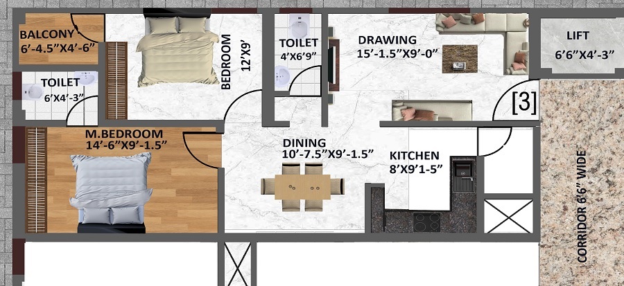 The project features well-designed 2 BHK apartments, available in two different unit options to cater to diverse buyer needs. The 950 Sq. Ft. apartments are priced at 47.50 Lac, while the 1050 Sq. Ft. apartments are available at 52.50 Lac. The spacious living areas, master bedrooms, and kitchen are elegantly designed and equipped with premium finishes, including oil-bound distemper walls and vitrified tiles flooring in the master bedroom. The project s specifications are designed to provide a luxurious and comfortable living experience.