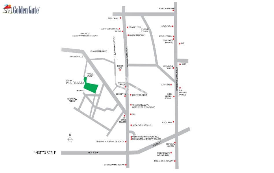 Golden Gate Panorama is a luxurious residential complex that offers the perfect blend of contemporary living and stunning panoramic views of greenery. The project offers 360 units spread over 5 acres in an amazing location. The apartments come in sizes from 1210 sqft to 3360 sqft. The project offers excellent connectivity via view roadway and Metro Network. Easy access to the areas like JP Nagar and Bannerghatta Road makes the project a perfect choice for those who want to be in the heart of the city.