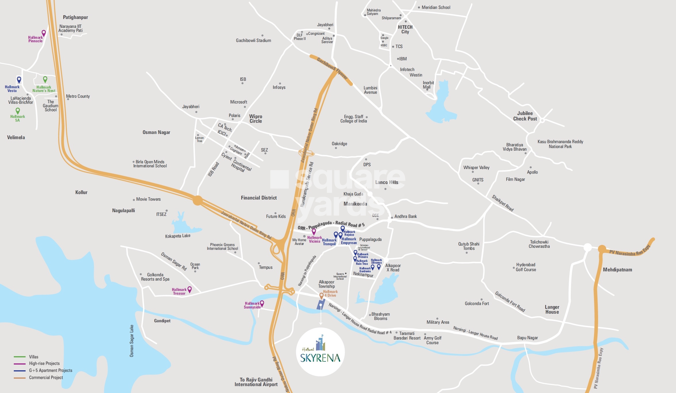 Hallmark Skyrena, situated in the upscale suburb of Narsingi, Hyderabad, offers an unparalleled living experience. Strategically located near NH 163 (4.5 km) and the Nehru Outer Ring Road Hyderabad (1.5 km), the project provides seamless connectivity to the city major business hubs, educational institutions, and entertainment avenues. Approved under the Government of Telangana RERA certificate bearing registration number P02400003042, Hallmark Skyrena ensures transparent and secure property transactions.