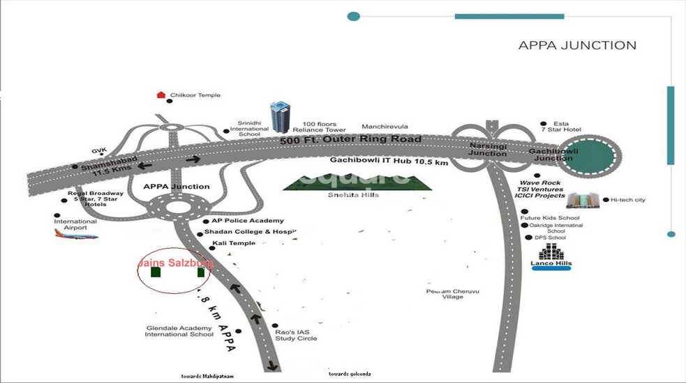 Jains Salzburg is a luxury apartment project located in South Zone, Hyderabad. The project offers 588 units spread over 5 acres with 2BHK to 3BHK apartments ranging in size from 912 sqft to 1273 sqft. The project offers ample large open space with a beautiful garden, designed to make life easier and comfortable for the residents. The project is well connected with Rajiv Gandhi International airport and close to schools, hospitals and malls.