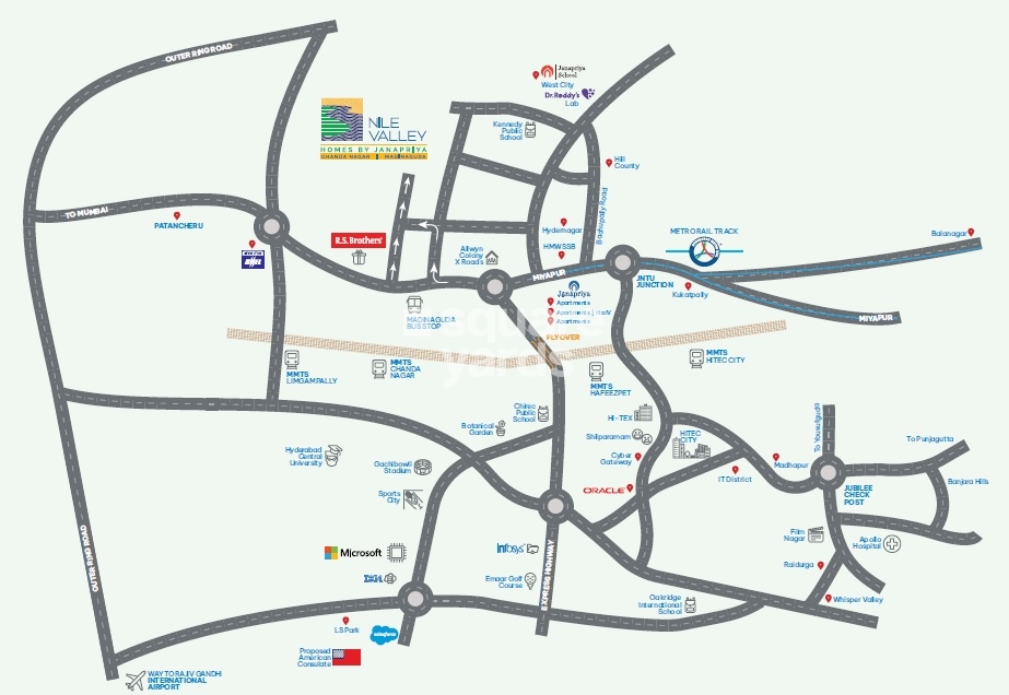 Janapriya Nile valley is one of the most awaited luxury projects in Hyderabad. Spread over 2400 acres in the West Zone, the project offers thoughtfully designed apartments, ranging from 970 sqft to 1440 sqft. The project is well connected to GSM Mall and Multiplex, as well as Chandanagar Railway Station, making it an ideal choice for those who want easy access to all the shopping and entertainment options in the city. Additionally, the project is well connected to Hyderabad Mumbai Highway, making it an easy commute to Mumbai or Pune.