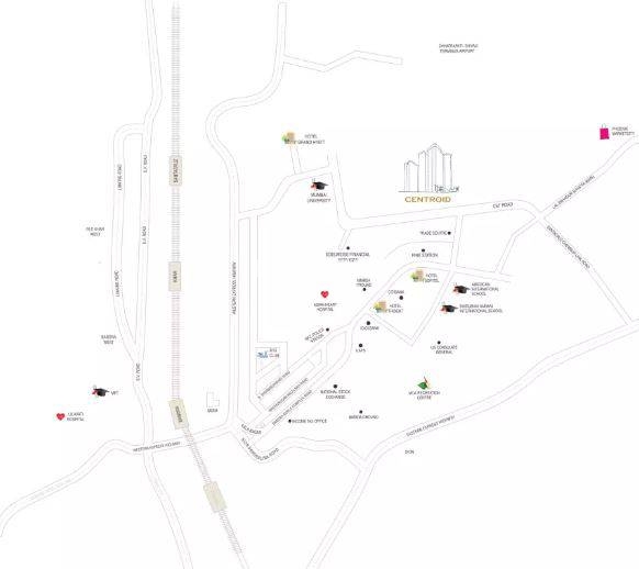 Kabra Centroid, a prestigious real-estate project, is strategically located in Santacruz East, one of the most prime locations in Mumbai. The project offers easy access to major connecting roads such as Santa Cruz Chembur Link Road and Bandra Kurla Complex Road, making it a commuter ' s paradise.