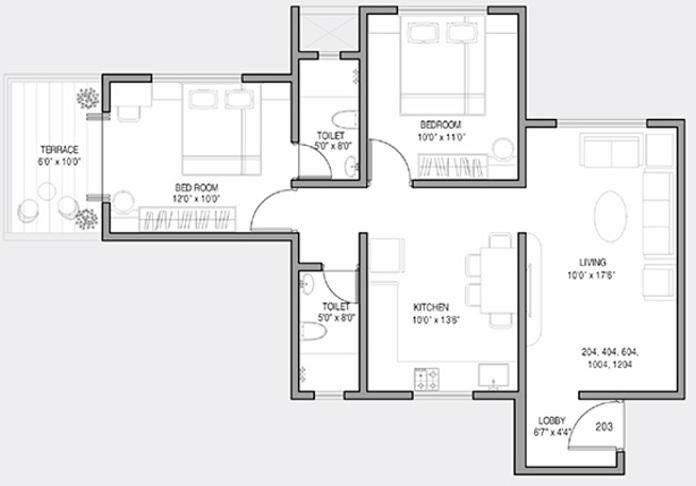 | 2 BHK Apartment | 970 | 40.74 Lac |