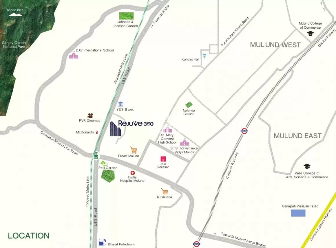 L&K Rejuve 360, situated in Mulund West, offers a serene living experience amidst the hustle and bustle of the city. Strategically located, it connects seamlessly to major roads such as Eastern Express Highway and LBS Marg, ensuring easy accessibility and convenience to all your needs.