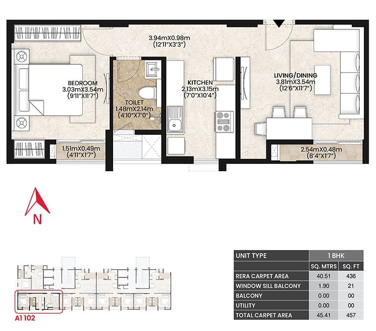 Available Unit OptionsThe following table outlines the available unit options at Mahindra Lifespaces Vicino:
