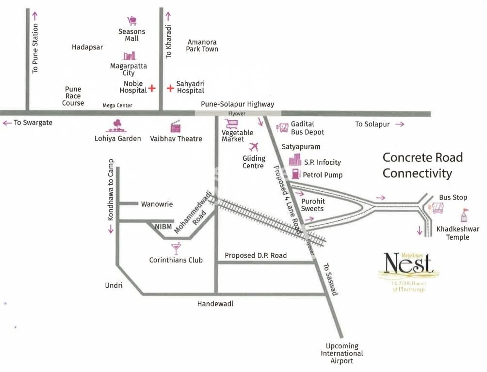 Majestique Nest Building D is a well designed, premium apartment project strategically located in Pune South,Pune. The project offers 143 units spread over 5.29 acres, with sizes ranging from 375 sqft to 617 sqft. The project is well connected to Schools like Walnut School and Lexicon School, as well as Magarpatta City. It is also easily accessible from Saswad Road.