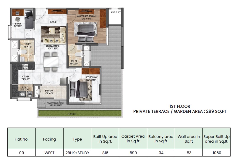 | 2 BHK Apartment | 1039 | 91.00 Lac |