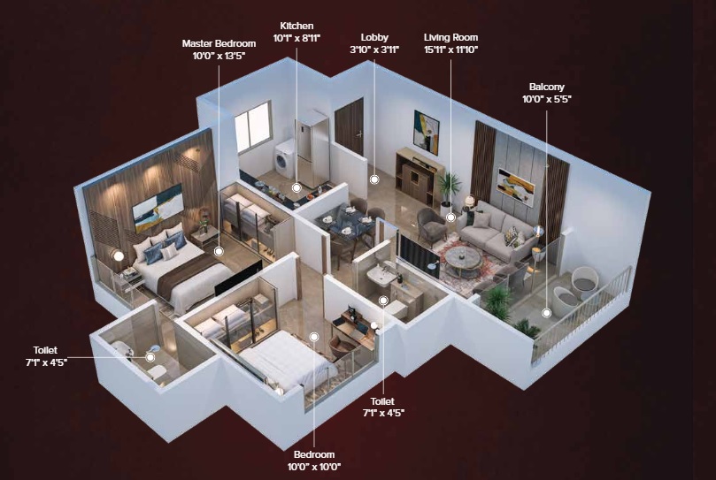 Manav La Centra offers 2 to 2 BHK Flat From 621 to 660 Sq.Ft residential apartments in different carpet sizes.