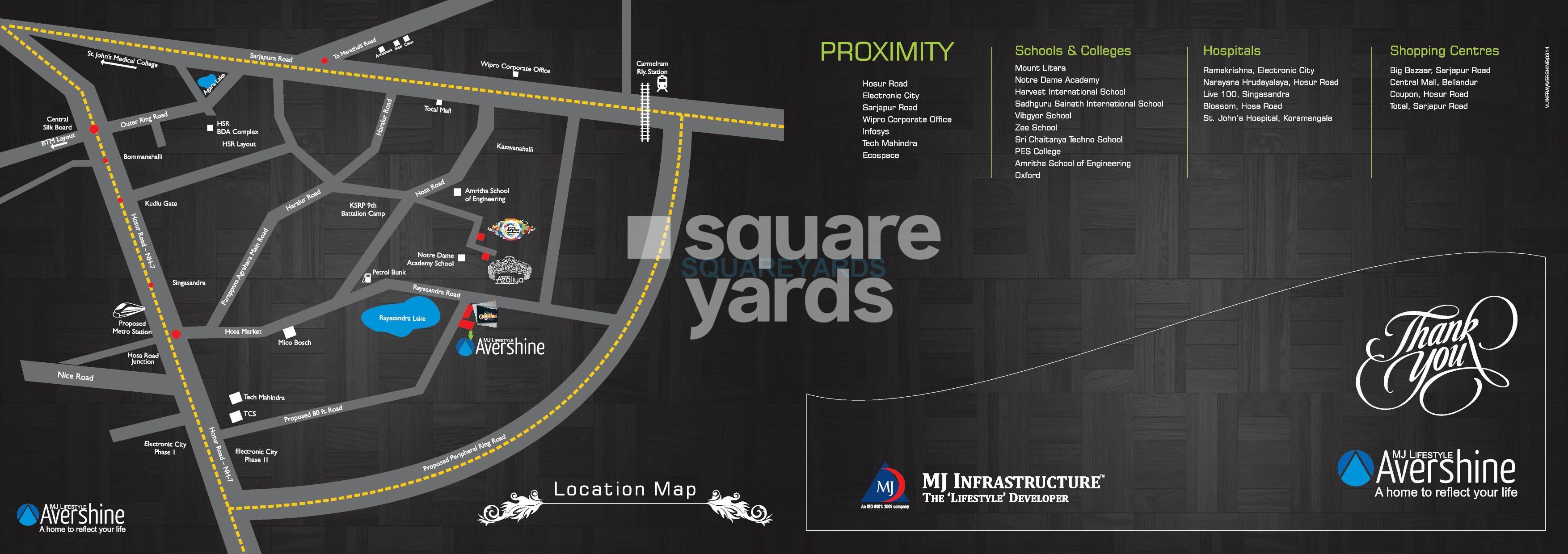 MJ Avershine is a value for money Project developed by one of the Bangalore well known Developers MJ Infrastructure. It is spread across 1.3 acre. The various configurations in which the flat units are available on sale in this project are 2 BHK Flats at a minimum price of Rs 35.07 L and maximum price of Rs 41.43 L with Property Size ranging from 866 Sqft to 1023 Sqft, 3 BHK Flats at a minimum price of Rs 45.12 L and maximum price of Rs 47.51 L with Property Size ranging from 1114 Sqft to 1173 Sqft. The Project is conveniently located in Sarjapur, South Bangalore and well connected by major road(s) like Sarjapur Road, Hosur Road. The Project has 150 Units. The Status of the Project is Ready to Move.