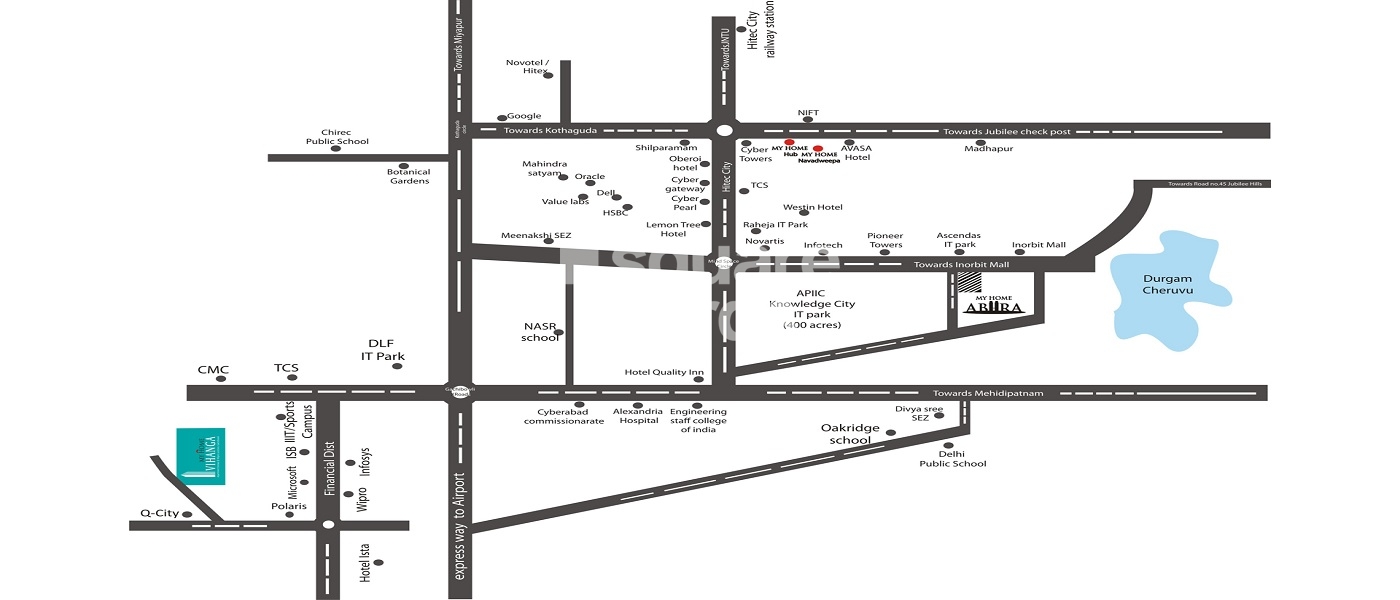 The world-class township project My Home Vihanga is situated in Hyderabad West Zone. The development offers a wide selection of opulent apartments in sizes ranging from 1150 square feet to 2862 square feet. The project offers a well-planned township that is well connected to all the important parts of the city. The flats are close to Nehru Outer Ring Road Hyderabad and have a convenient retail centre for daily necessities.