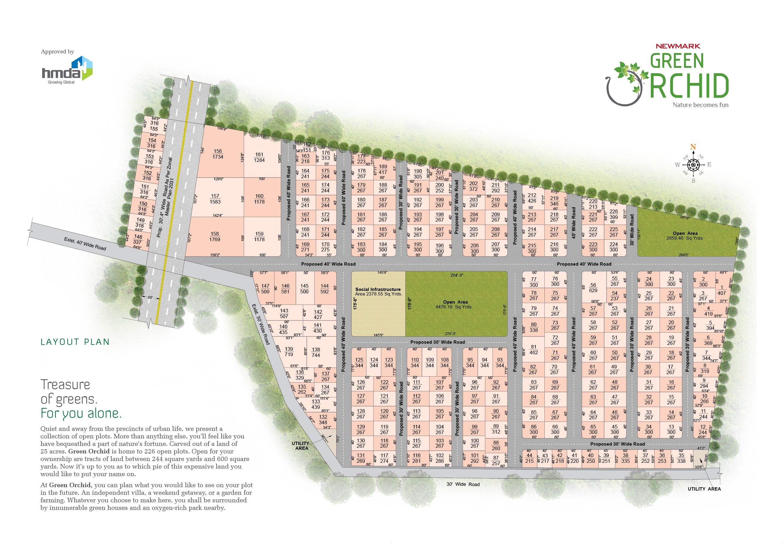 Newmark Green Orchid is an affordable Project by Newmark Urbanspaces who are one of the renowned developers in Hyderabad. It is located in Pudur, North Zone and well connected by major road(s) like Nehru Outer Ring Road Hyderabad , Nizamabad Road NH 44. Newmark Green Orchid is spread across 25 acre. The Project has 226 Units. The status of the Project is Ready to Move
