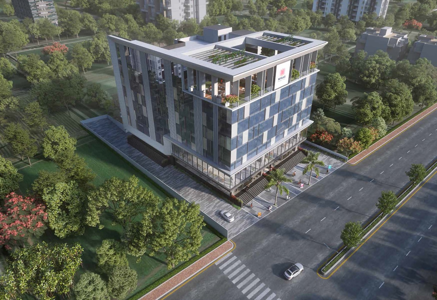 Nivaas Business Square offers two prime office space options to suit your business needs. Choose from office spaces with an area of 882 Sq. Ft. priced at 1.25 Cr, perfect for small to medium-sized enterprises, or retail shops with an area of 769 Sq. Ft. priced at 2.25 Cr, ideal for those looking to establish a strong retail presence. Invest in Nivaas Business Square today and take your business to new heights.