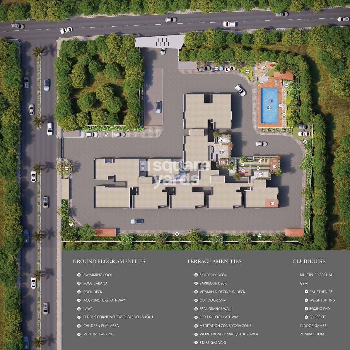 Oceanus White Meadows features a range of world-class amenities designed to cater to your every need. From a state-of-the-art gymnasium to a fully-fledged cafe / coffee bar, you ' ll have access to a holistic lifestyle that ' s unparalleled in the region. With features like power backup, 24 x 7 security, and rain water harvesting, you can enjoy a life of comfort and convenience. The project ' s specification includes master bedroom walls finished with plastic emulsion and flooring with vitrified tiles, ensuring a luxurious yet practical living space.