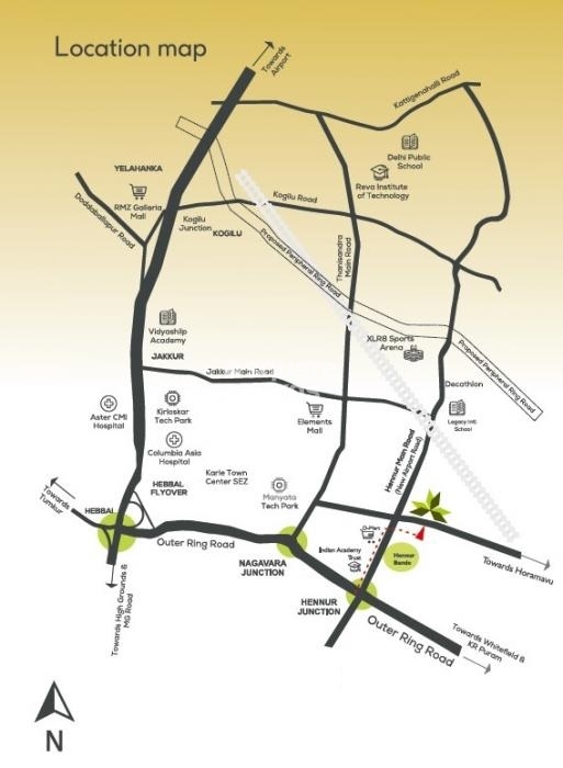 Introducing Orion Palm Dew, a luxurious residential project strategically located on Hennur Road, providing seamless connectivity to major roads like NH 44, which is just 1.8 km away, and Thanisandra Main Road, approx 2.5 km away. This project is registered under RERA with reference number PRM/KA/RERA/1251/446/PR/200113/003152 and offers a range of modern amenities to ensure a comfortable and convenient lifestyle.