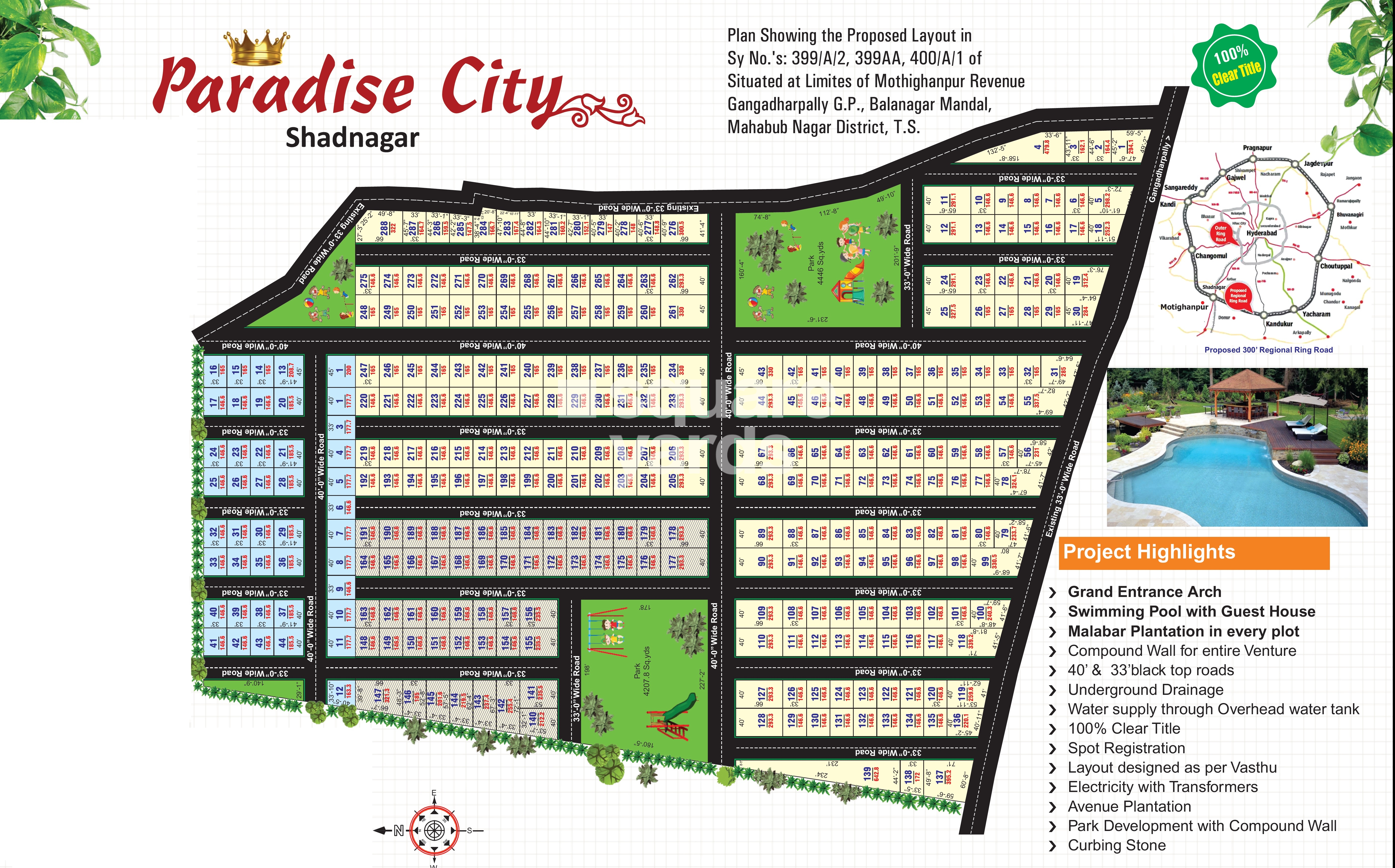 Paradise City is a well designed, well connected and convenient apartment project located in the South Zone of Hyderabad. The project offers 2394 sqft of well designed apartments with all the modern amenities. The project is well connected with all the major points of the city and is conveniently located near a shopping centre for daily needs. The project is also well connected to NH 44.