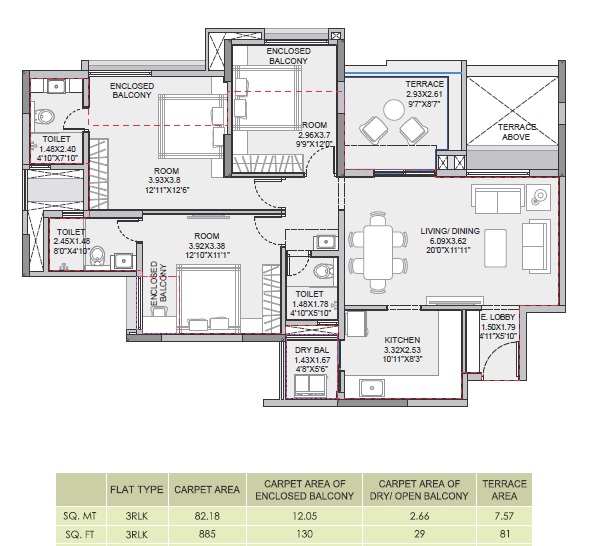 | 3 BHK Apartment | 885 | 1.46 Cr |