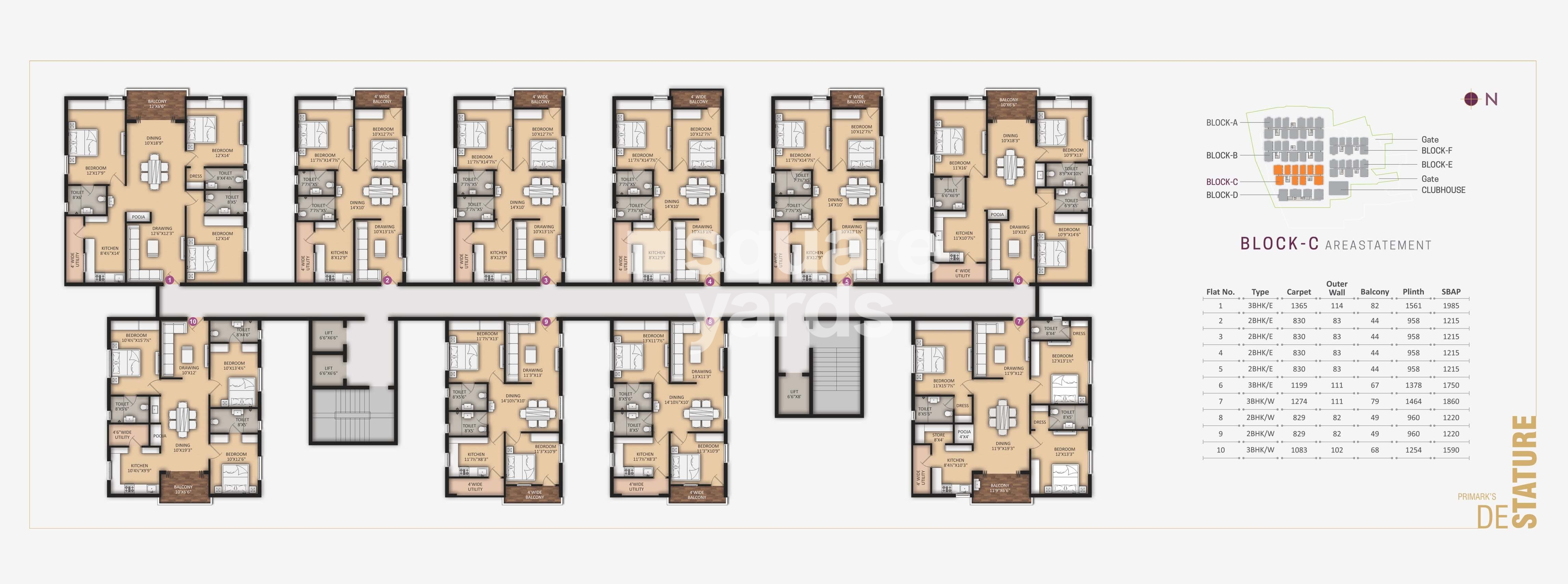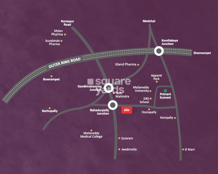 Primark De Stature is a luxurious gated community that offers 416 units spread over 5 acres in North Zone, Hyderabad. The project offers a variety of luxurious 3BHK and 4BHK apartments ranging from 1170 sqft to 2045 sqft. The project also offers a whopping 5 acres of lush green open space that is perfect for a relaxing getaway. The project is situated close to various educational institutes like Malla Reddy University and Narsimha Reddy Engineering College. The project is easy to access to all the major landmarks of the city.