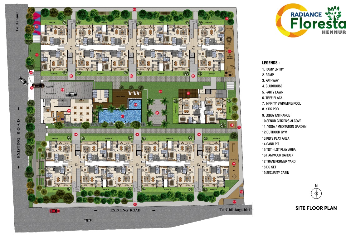 Radiance Floresta, a picturesque residential project located in Hennur, offers the perfect blend of tranquility and connectivity. With proximity to Hennur Main Road and Thanisandra Main Road, residents can easily access the city s major hubs and attractions. This project is designed to provide a serene living experience, surrounded by lush green spaces and modern amenities.