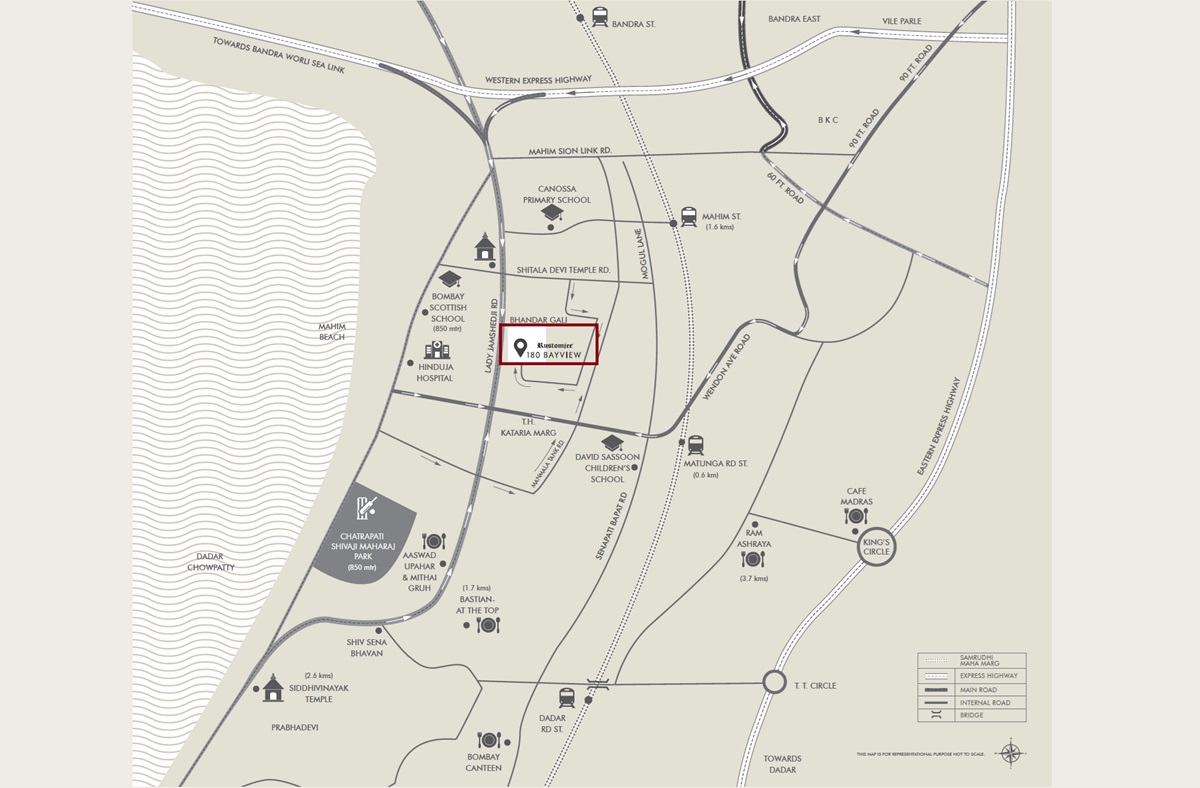Rustomjee 180 Bayview, a premium residential project, is located in the heart of Matunga West, offering a unique blend of convenience and tranquility. The project strategic location on Lady Jamshedji Road and proximity to Eastern Express Highway make it an ideal choice for those seeking a peaceful retreat with easy access to the city main attractions.