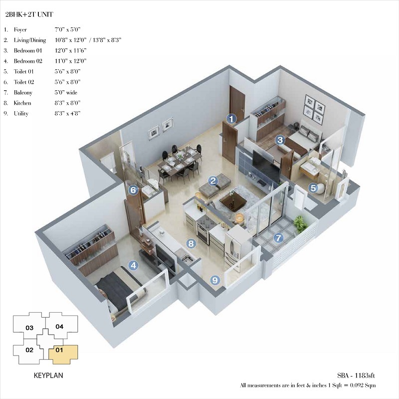 There are many carpet sizes available in residential flats at Salarpuria Sattva Cadenza.