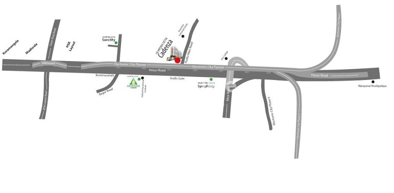 Salarpuria Sattva Cadenza is located at Kudlu Gate, Junction, Hosur Road, Bangalore, Karnataka, Pin code - 560068.
