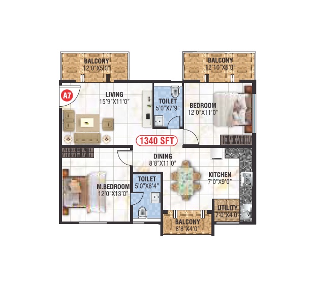 | 2 BHK Apartment | 1340 | 1.17 Cr |