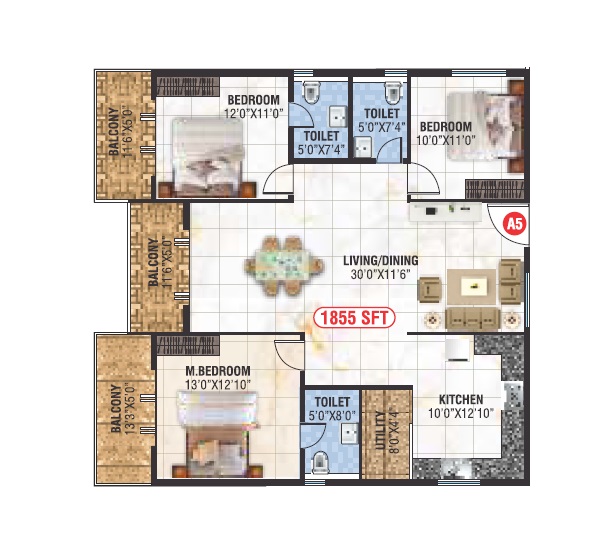 | 3 BHK Apartment | 1855 | 1.61 Cr |