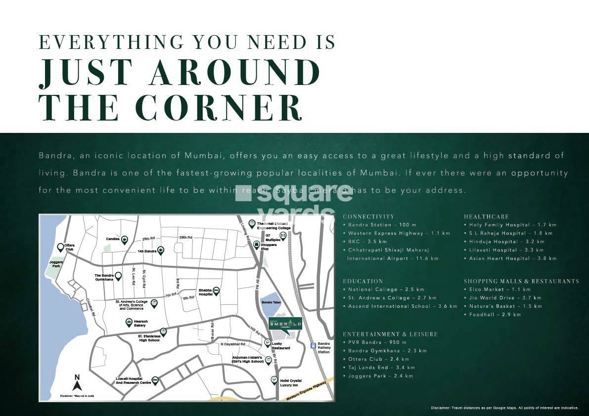 Sayba Emerald is a premier residential project located in the heart of Bandra West. This magnificent project is strategically connected to Swami Vivekanand Road, just 0.2 kilometers away, and Western Express Highway, approximately 1.5 kilometers away. This prime location offers easy accessibility to major business hubs, schools, colleges, and entertainment centers, making it an ideal choice for those seeking a perfect blend of comfort, convenience, and lifestyle.