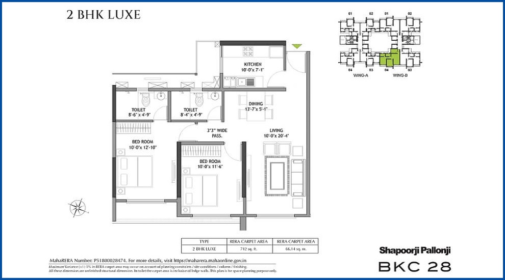 Shapoorji Pallonji BKC 28 in Mumbai is located at a highly preferable location composed of all the world-class amenities. However, the spacious apartments of this residence are designed as Vastu compliant, especially the entry and the exit. This 22-storey building with 4 spacious apartments on each floor offers 2 BHK apartments.Â