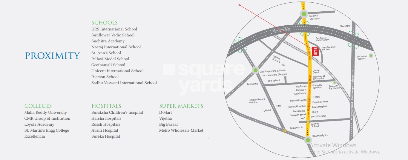 Shree Krishna Homes Hyderabad is a well designed and well connected apartment project located in North Zone, Hyderabad. The project offers 352 units of 2BHK-3BHK apartments with sizes ranging from 1100 sqft to 1670 sqft. The project is well connected with all the major points of the city with well designed roads and well connected roads. The project is also conveniently located close to Nizamabad Road NH 44, Gundla Pochampally Railway Station and is well connected to all the major shopping centres in the city.