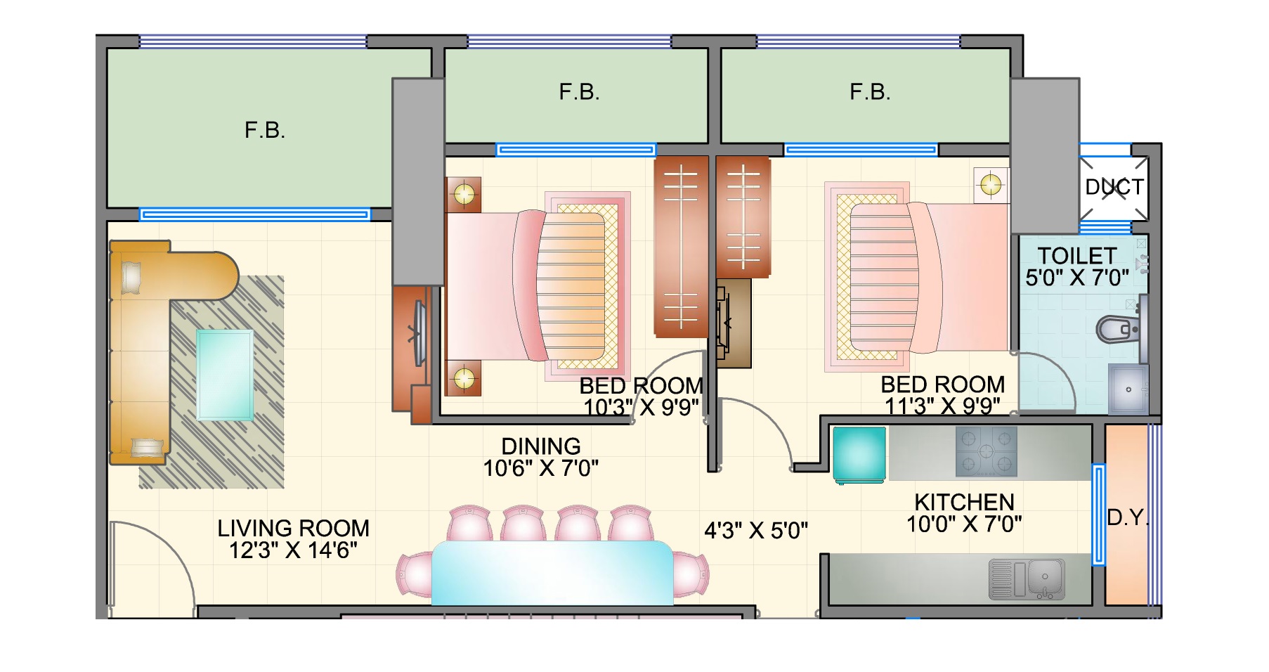 | 3 BHK Apartment | 1270 | 2.70 Cr |