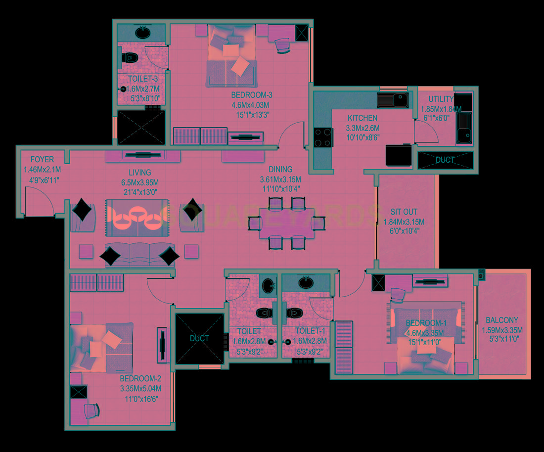 | 3 BHK Apartment | 2970 | 4.19 Cr |