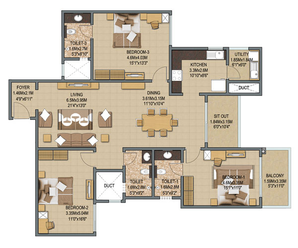 The project offers a range of spacious units, from 3 BHK to 4 BHK apartments, catering to the diverse needs of its valued customers. With various options ranging from 1950 to 3995 square feet, Sobha Indraprastha provides the perfect blend of comfort, style, and functionality. Prices start from 2.75 Cr for the 3 BHK apartments, while the 4 BHK apartments are available from 4.77 Cr.